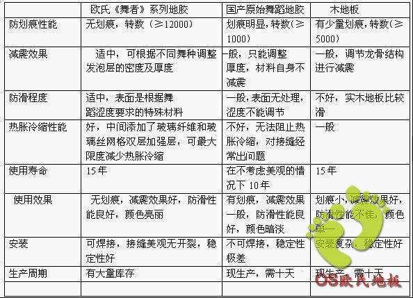 舞蹈地面材料主要性能對比
