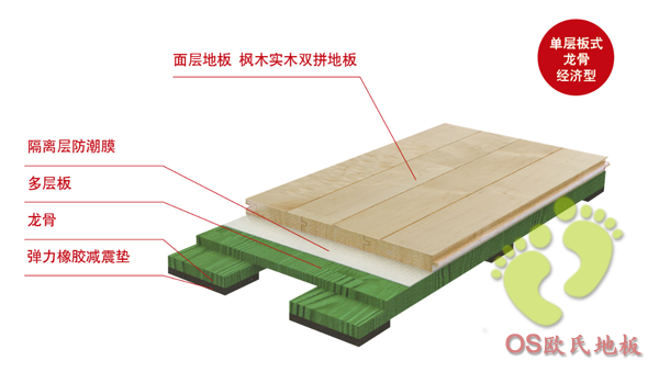 運(yùn)動木地板結(jié)構(gòu)說明: